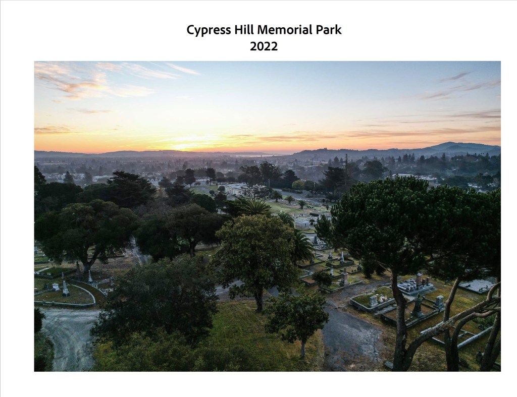 This photo book contains drone photographs of Cypress Hill Memorial Park and can be purchased from Blurb.