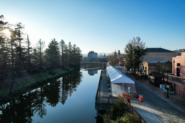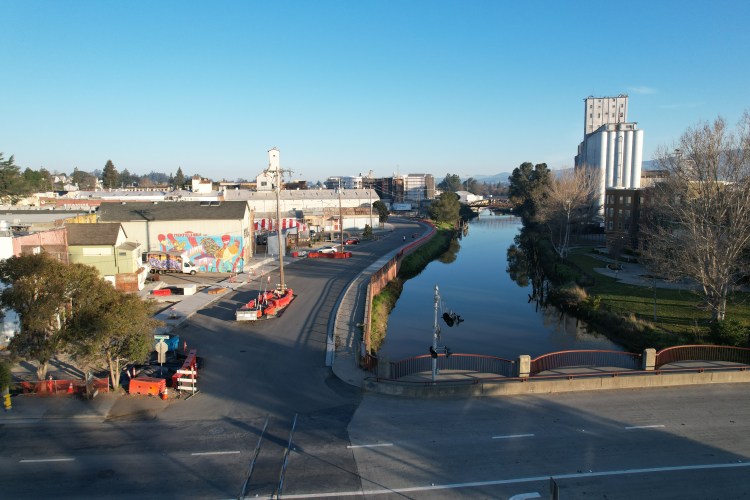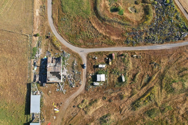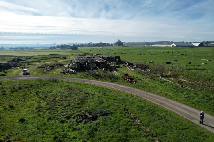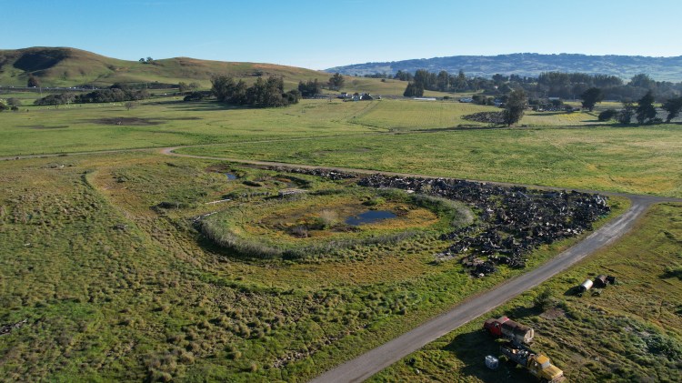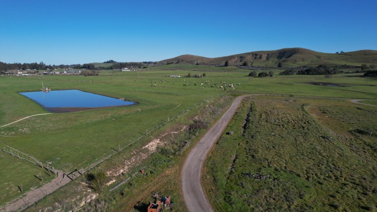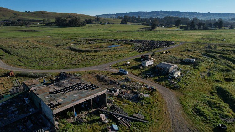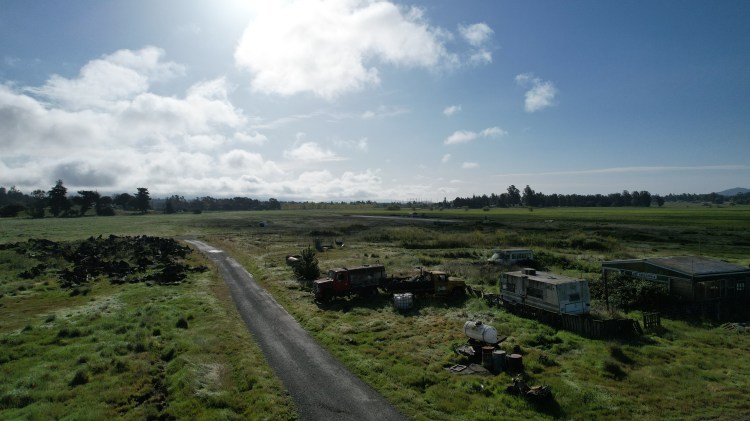 I am a member of Liberty Flyers of Petaluma, an organization devoted to model airplanes that also has some members who fly drones. The Liberty Flyers rent a 43.5 acre field at 595 Stony Point Road. It has a 525′ by 49′ stretched-fabric runway for the model aircraft. I like to fly at the southern end of the field which has lots of interesting junk and is also away from the model aircraft.